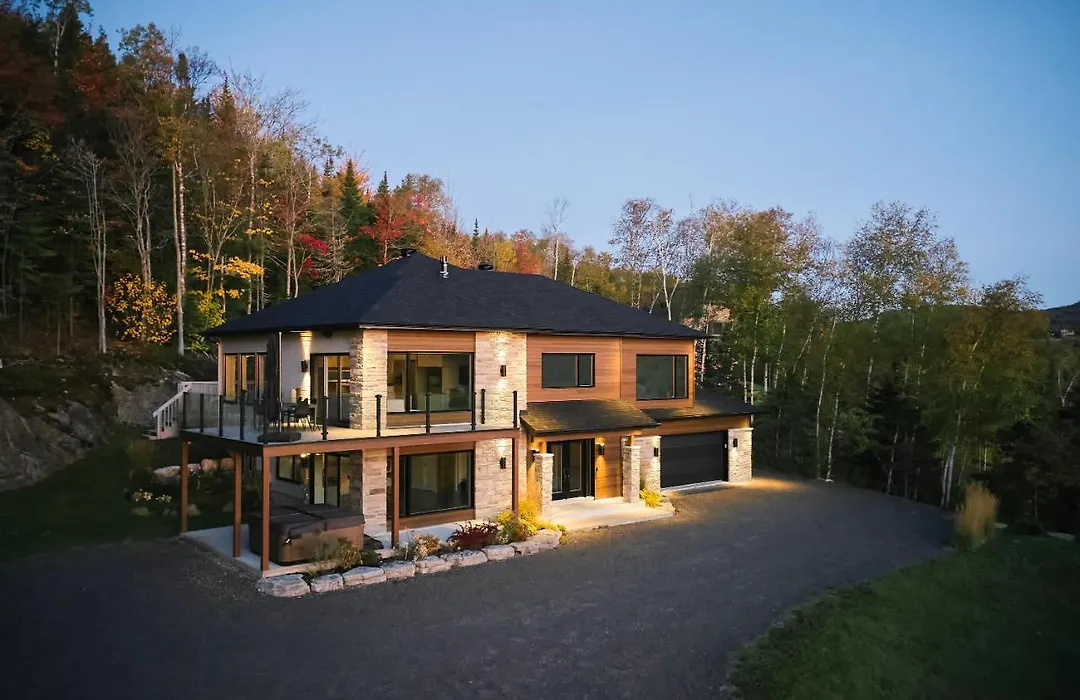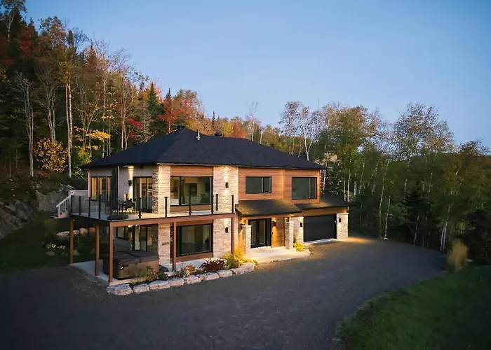 Greystone - View + 4X King Beds + Spa + Fireplace שוכנת במרחק של 4.6 ק"מ על Alpacas Charlevoix, ומציגה נכס בעל 4 חדרי שינה עם פאטיו שמש. לנכס זה ישנו מטבח מאובזר המסופק עם נוחיות, כמו מיקרוגל, מדיח כלים ומקרר לשירות עצמי.